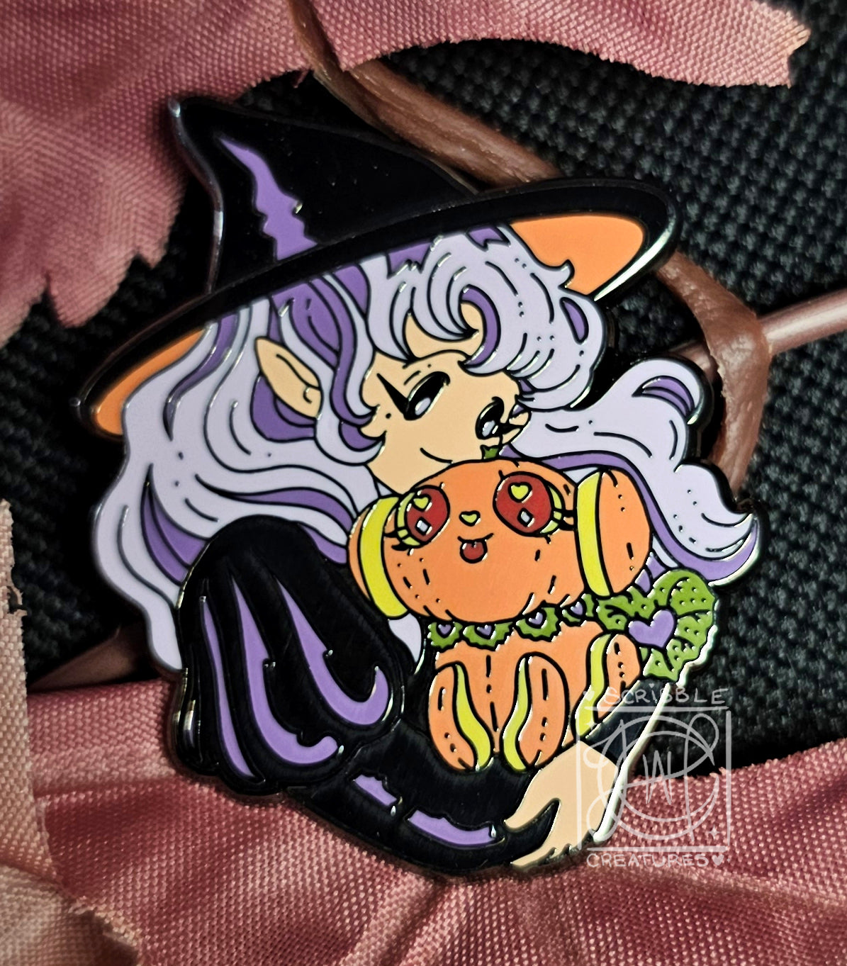 This pin set is uniquely designed by Scribble Creatures, and measures approximately 1.5" on hard enamel.