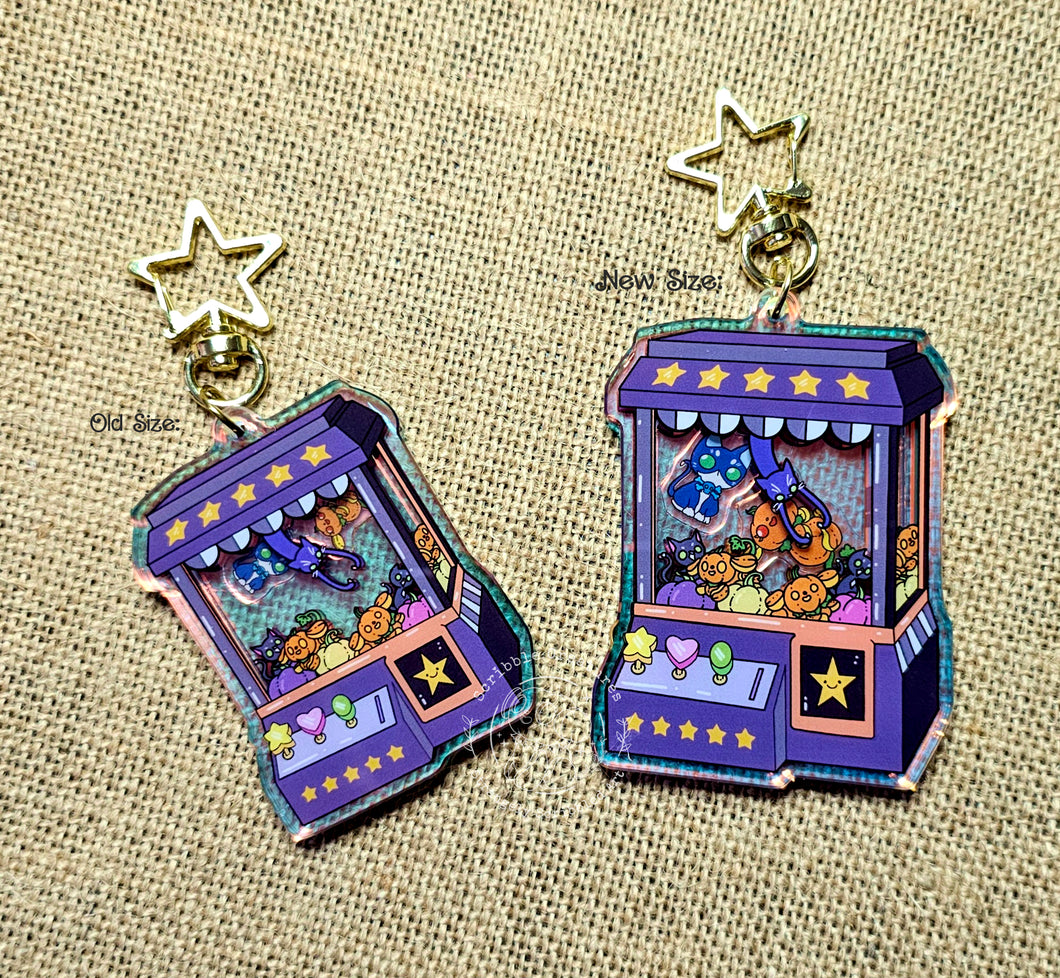 A double sided acrylic charm measuring approximately 3"